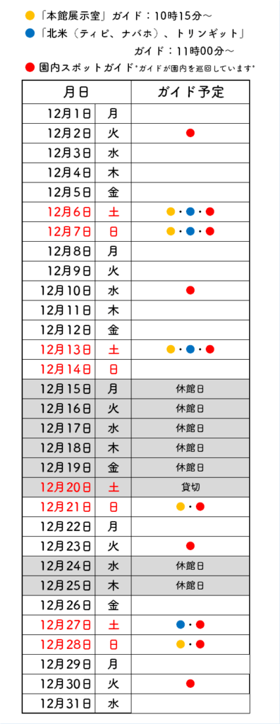 2025年12月のスケジュールは下記のとおりです。(2025/12/05更新しました)