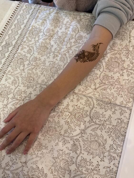 ヘナを使って肌に模様を描くインドのヘナタトゥー。描いた模様は1~2週間の期間限定でお楽しみ頂けます。