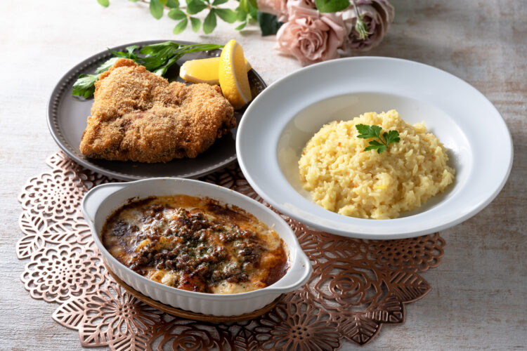 サフラン香る名物料理リゾットやサクサク衣のカツレツをご賞味あれ。