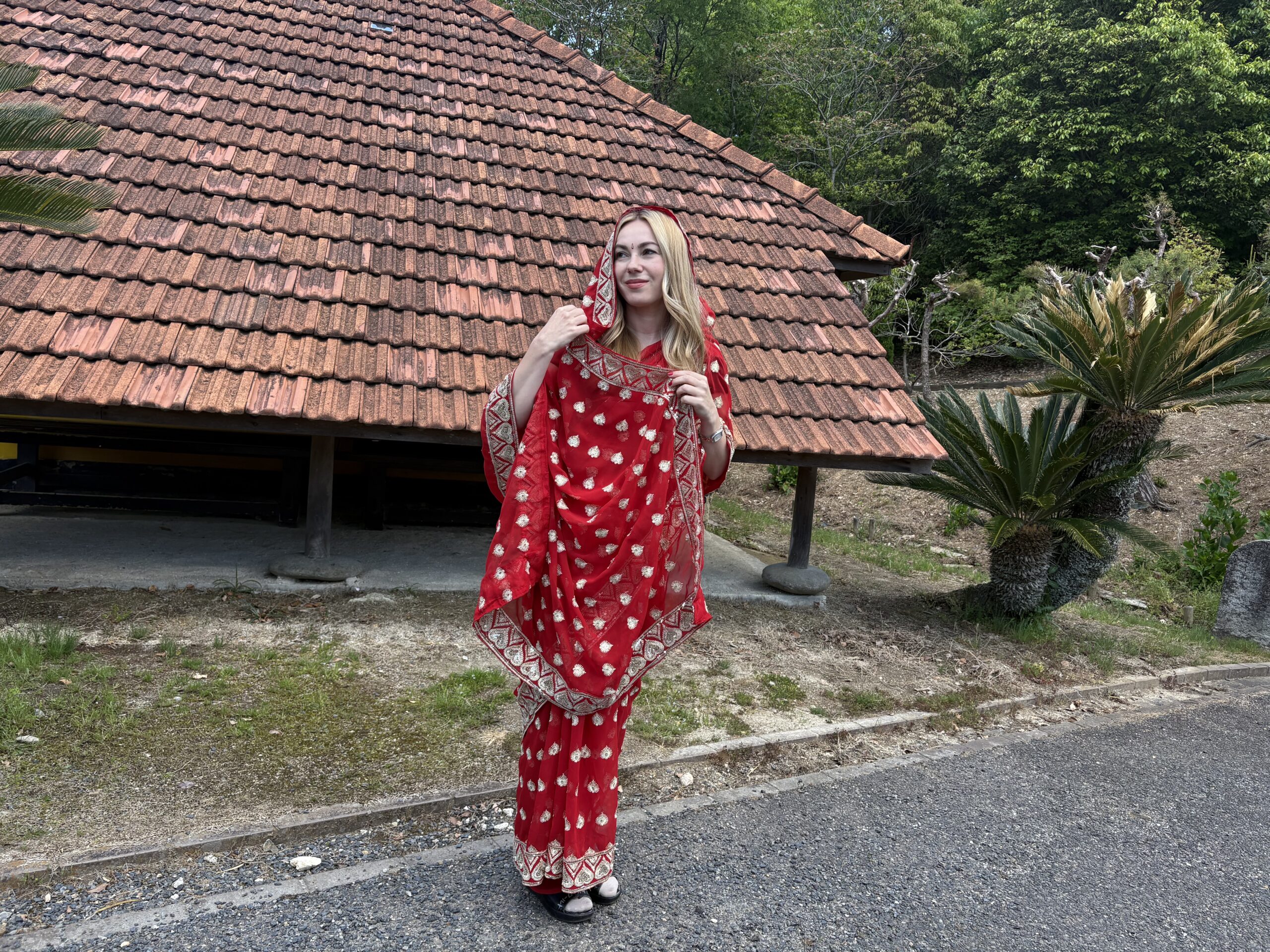 サリーの着用方法はこちらでも紹介しています。