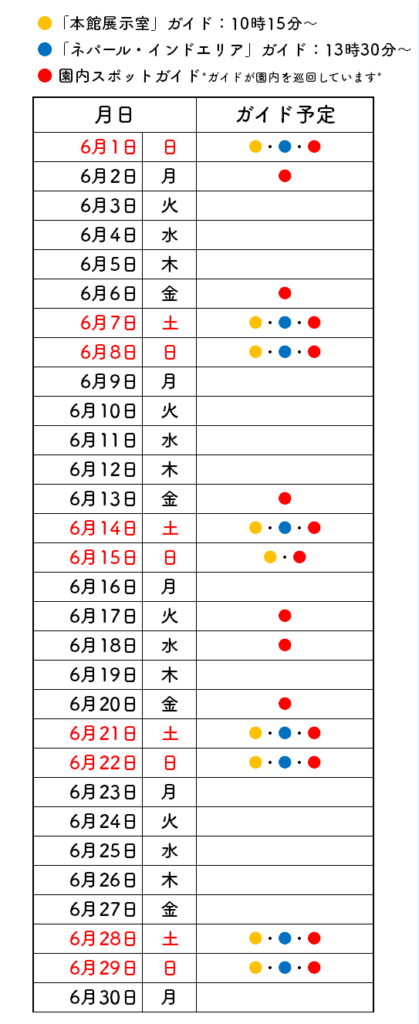 土日祝、平日を中心に、ガイドスタッフが本館展示室・野外展示場を巡回しながら解説をおこなっています。