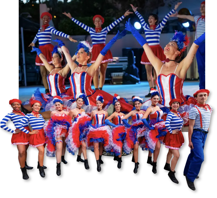 19世紀末にフランスで大流行した軽快なリズムに合わせてスカートの裾をまくり、足をはね上げて踊るダンス。本場フランスから6名のダンサーを招き華やかなショーをお届け!
