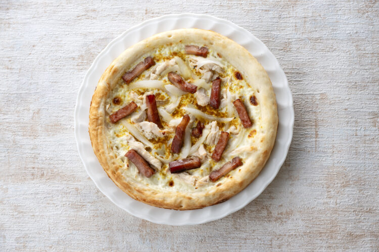モチモチ生地にまろやかなコクのあるマスカルポーネチーズをたっぷり塗った贅沢ピザ。カレーの香りがふわっと広がる食欲そそる一枚。