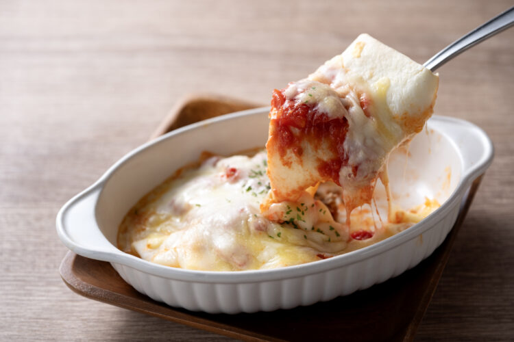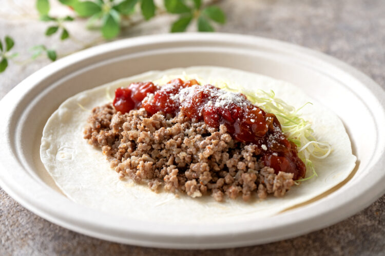 特製ミンチ入りトルティーヤにトマトソースとチーズをたっぷりかけて召し上がれ♪