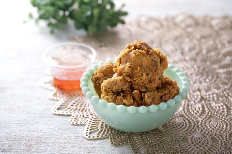 ひよこ豆のパウダーを衣に使ったインドで定番の鶏の唐揚げ。