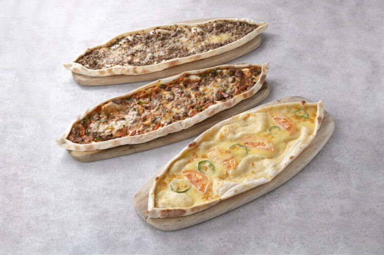 生地の外側がパリパリと香ばしく、たっぷりのチーズと具材がトッピングされたトルコの「ピデ」。3種類ご用意しております。