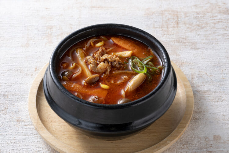 身体の芯から温まる本格ユッケジャンスープ。牛肉の旨味がたっぷり。