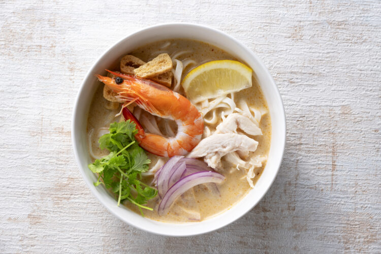 カレーで使われるスパイスと魚介出汁を効かせたココナッツスープが特徴!東南アジアで人気の麺料理★