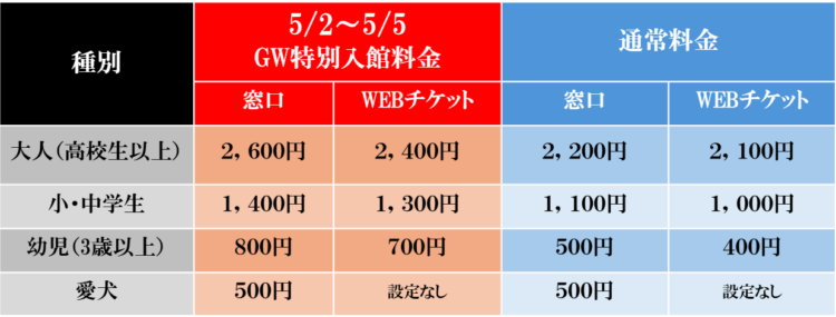 2026年5月2日(土)~5日(火・祝)までは入館料金が変更となります。