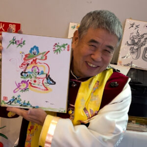 名前など好きな文字を色鮮やかに縁起の良い絵柄で描きます。