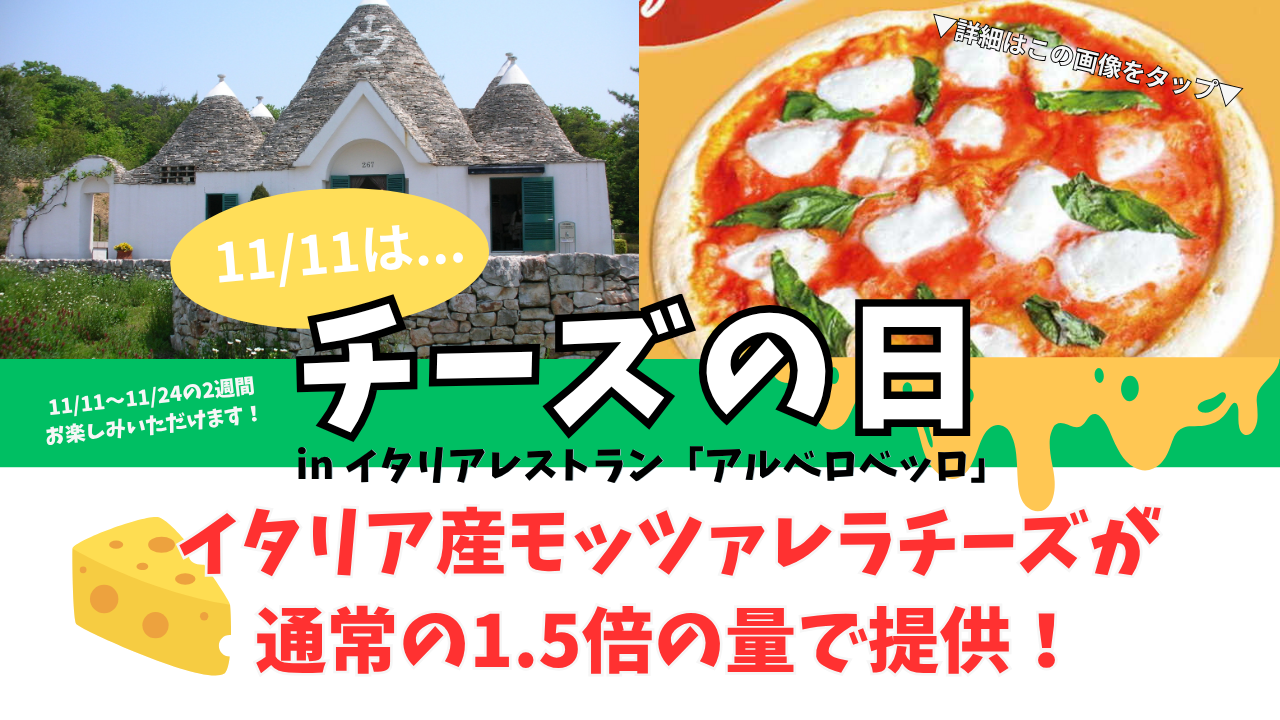 【11/11(火)】チーズの日 &【11/20(木)】ピザの日