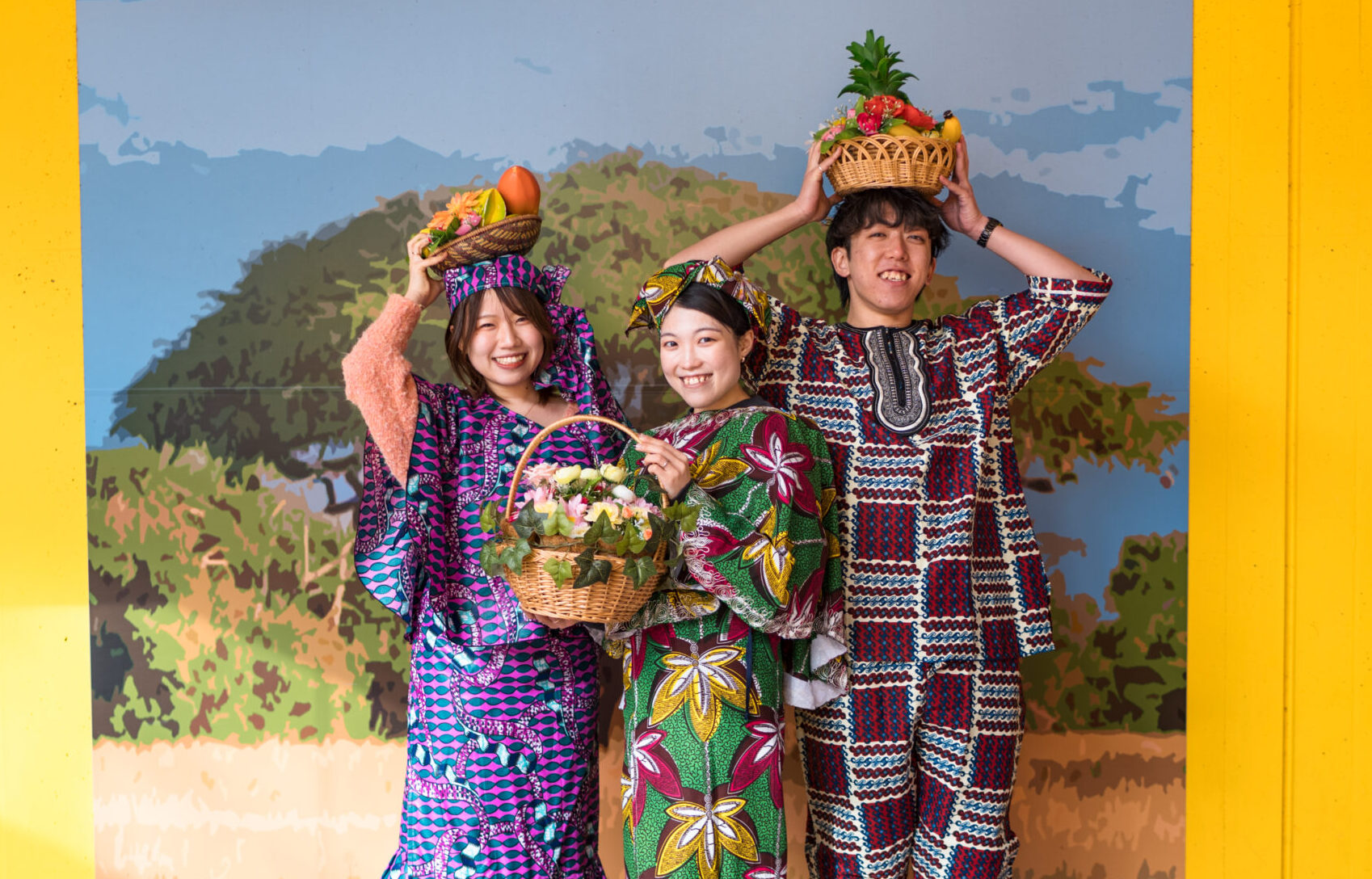 アフリカ大陸各地の文化を紹介する展示場のほか、衣装ブース、体験コーナーを備えている。