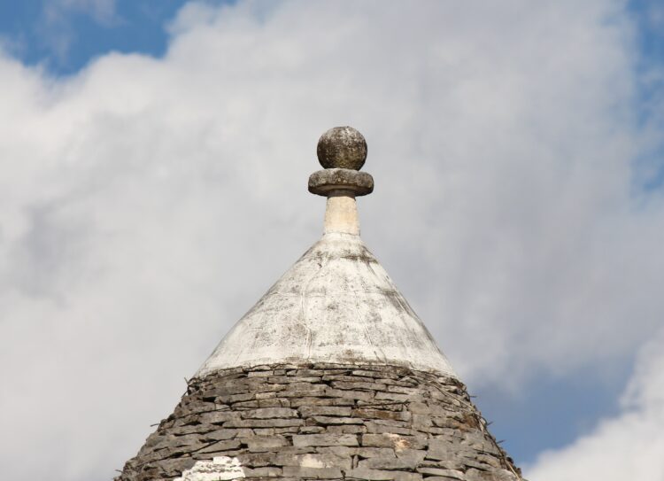 アルベロベッロの伝統的な家屋は、とんがり帽子のような屋根を持つことが特徴です。屋根は平たい石を積み上げて作り、このような屋根をいくつかもつ家屋をトゥルッリと呼びます。