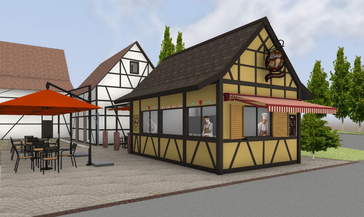 アルザスより寄贈された、美しい木組みの農家