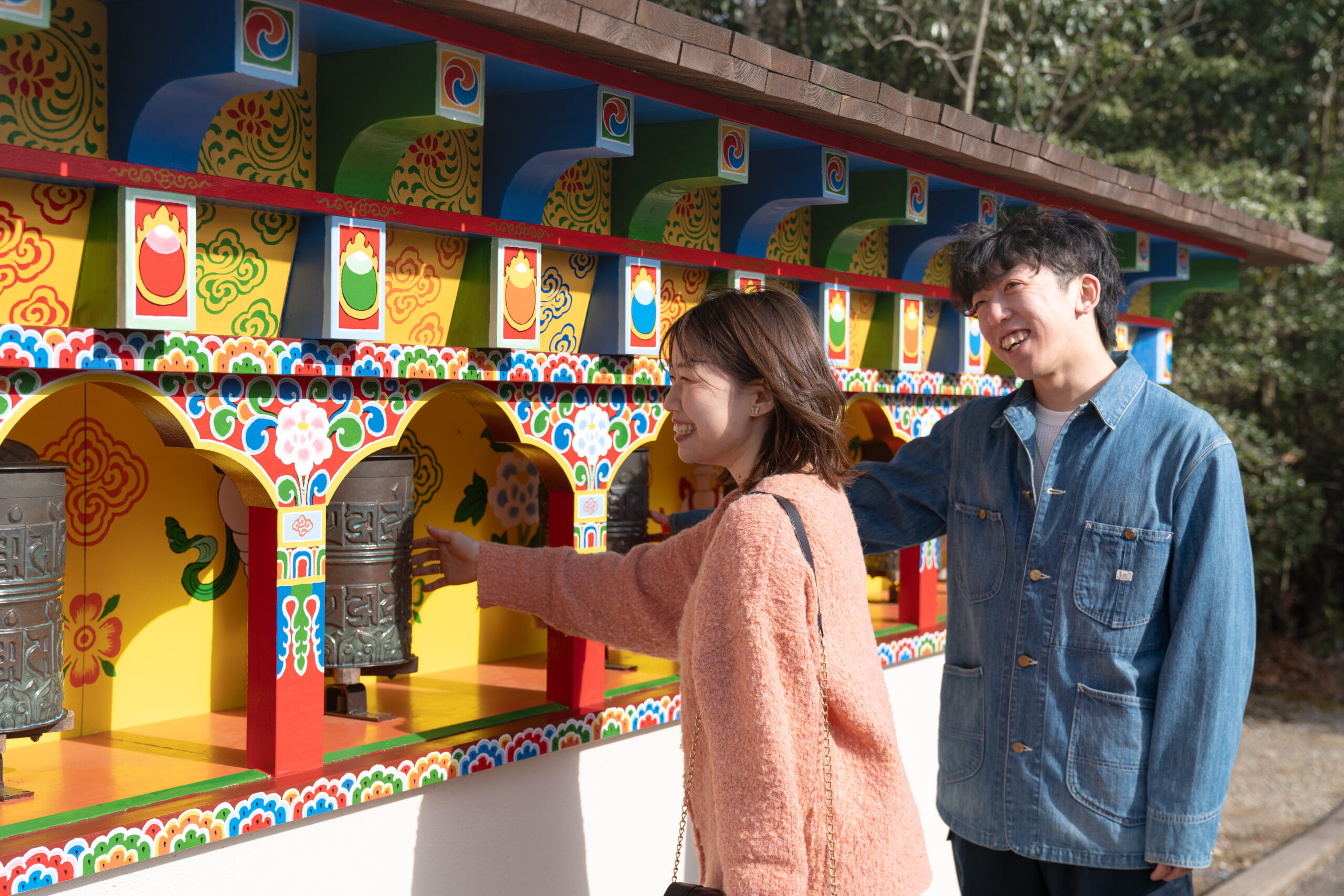 本堂の1階と2階を埋め尽くす極彩色のマンダラと仏画は、現地から招聘した絵師10名によるもので、1年以上かけて復元されました。これらの絵は悟りを表現する手段として描かれており、天然絵具を使用した美しい作品は、芸術的にも高い評価を受けています。