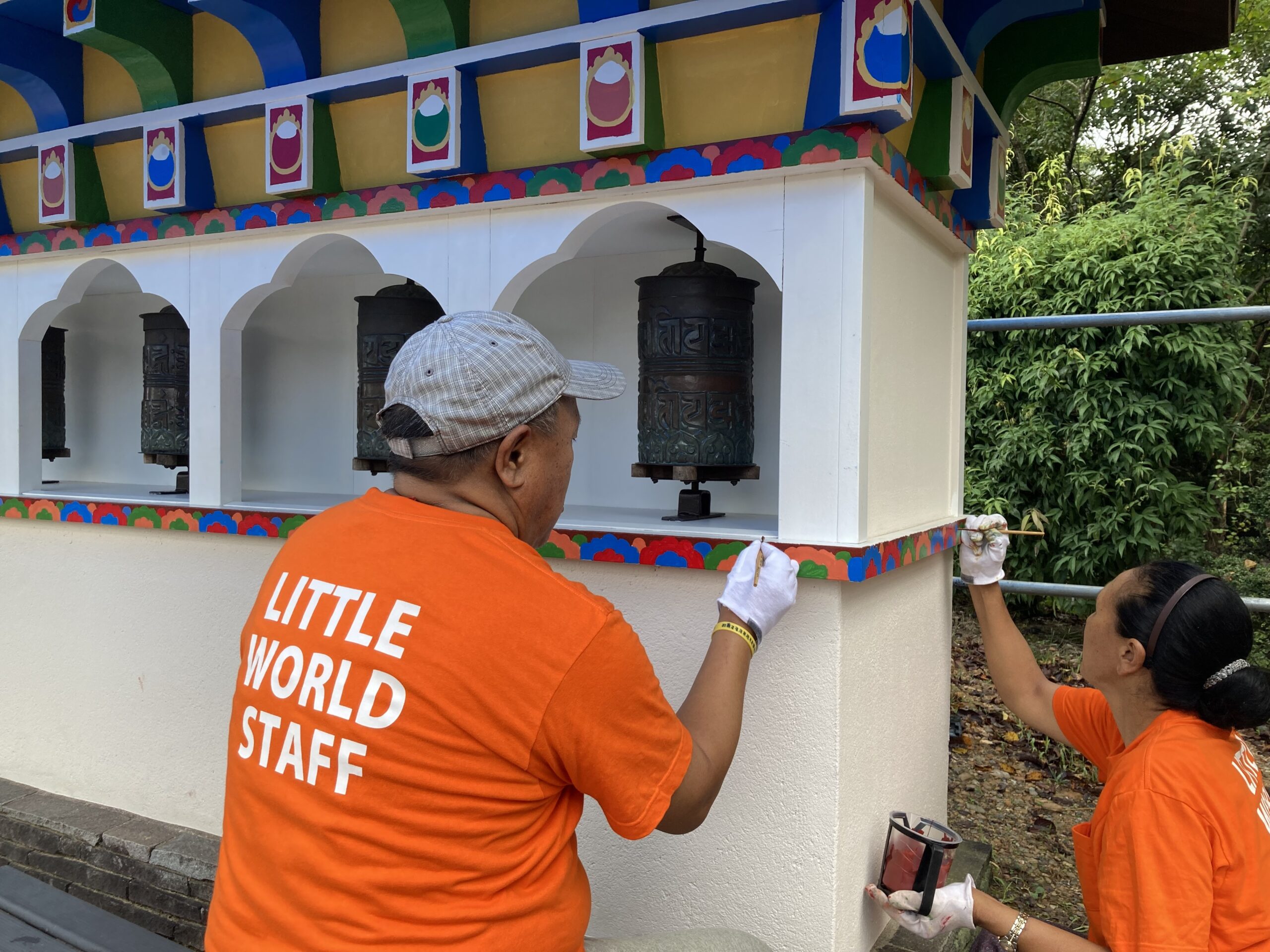カルマさんの厚い信仰心とリトルワールドへの想いが、新たなマニ輪舎の佇まいに深く刻み込まれています。