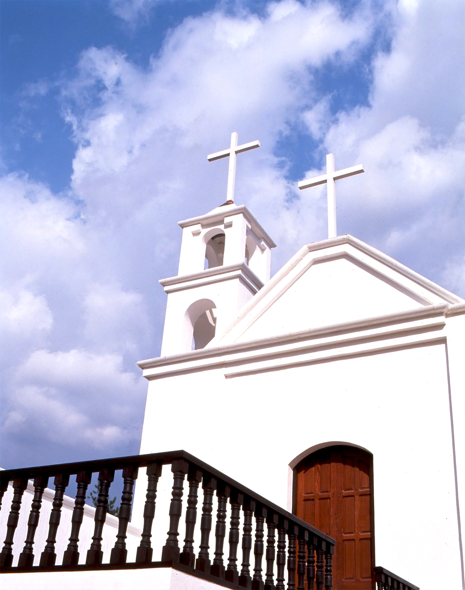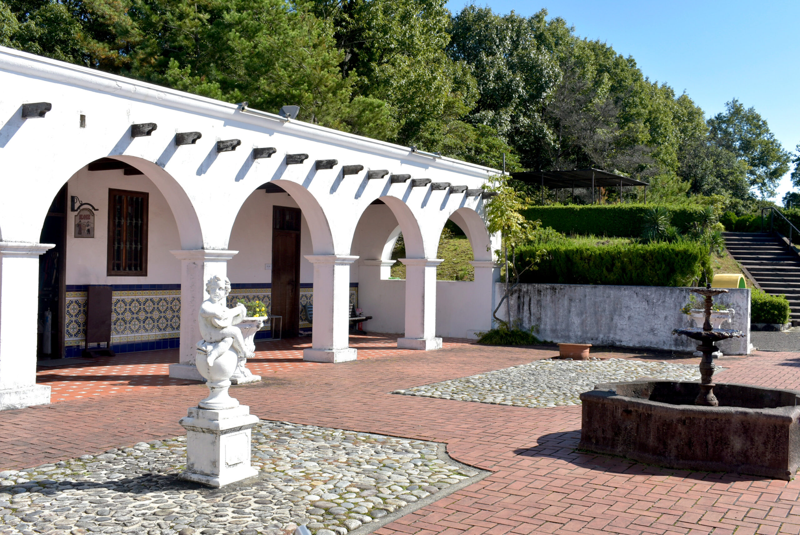 丘の上に中庭を囲んだ母屋があり、その左端にカトリックの礼拝堂が設けられています。前庭の手前には農場経営のための事務室と倉庫があります。
