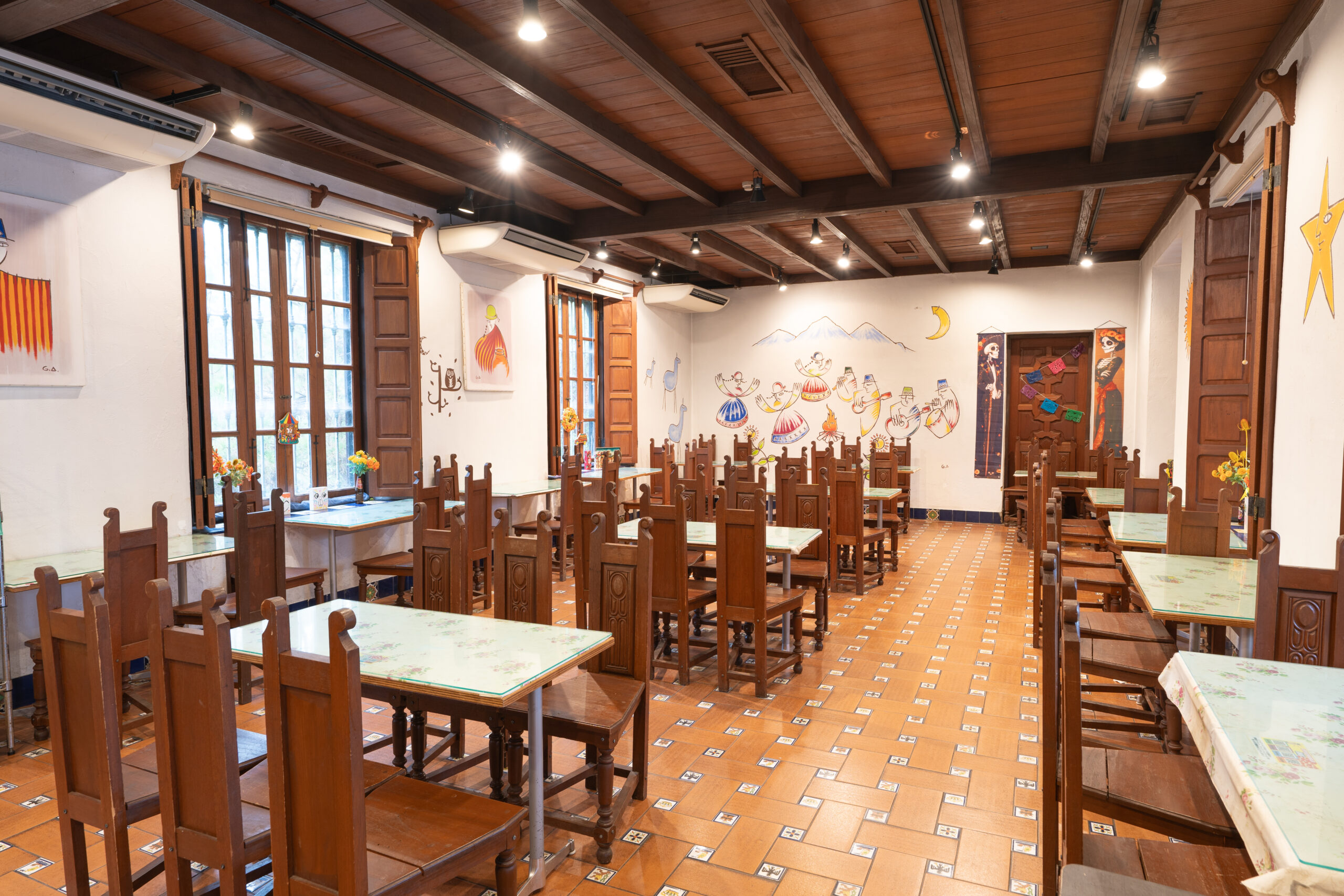 礼拝堂と倉庫棟には、ペルー人画家で修復師であるハイメ・ロサン夫妻の手による壁画が半年にわたって描かれました。礼拝堂には、現地「カキ」の壁画「イエスの誕生」「最後の晩餐」を、同じ“テンペラ”という技法(顔料に卵を混ぜて描く)を用いて忠実に再現しています。倉庫棟には、「インカ帝国の滅亡」「アシエンダのくらし」というテーマで描いています。
