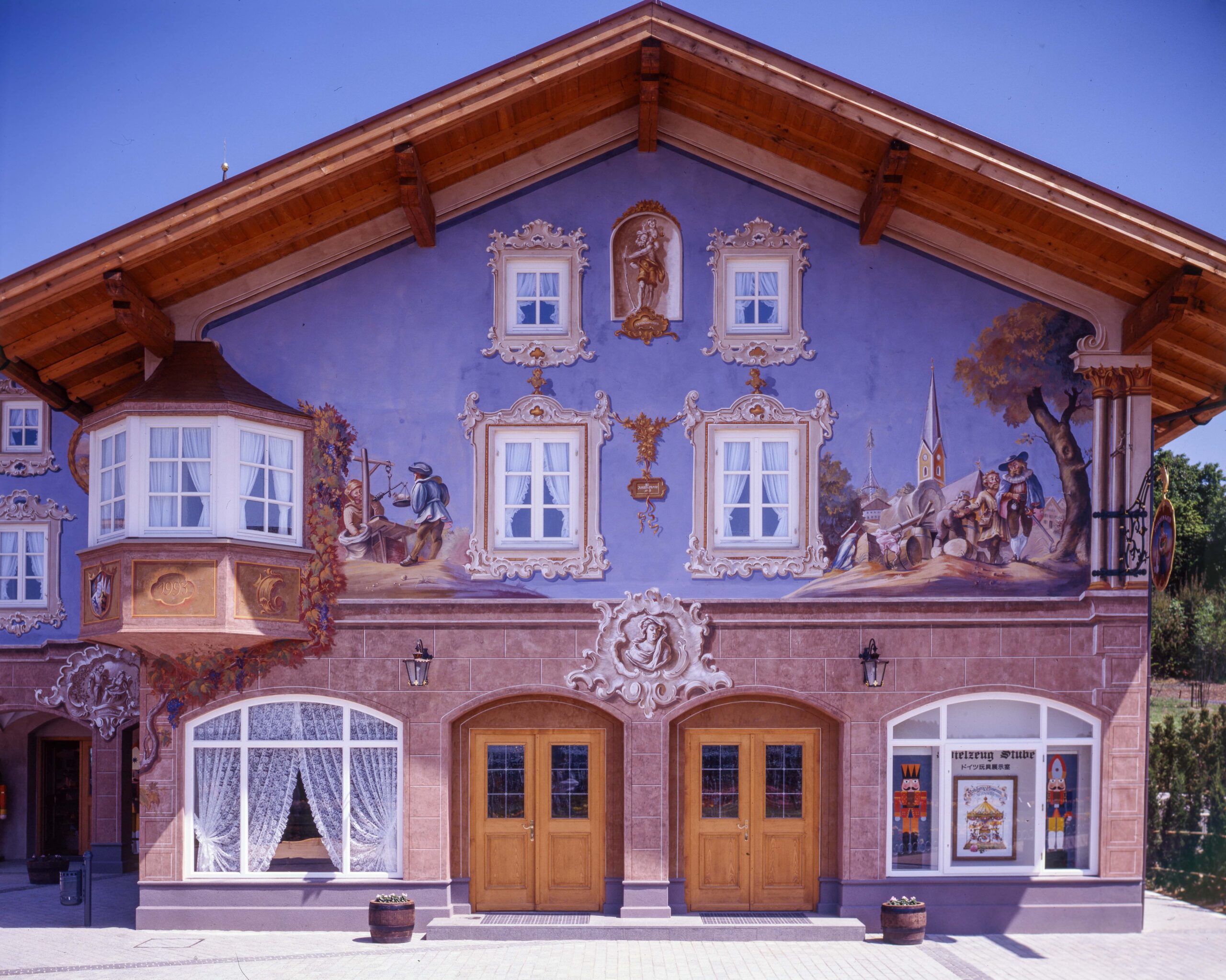ガルミッシュ・パルテンキルヘン周辺では、「風の絵」と呼ばれる美しいフレスコ画が民家の外壁に描かれています。この名前はそよ風のような手早さで描き上げられなければならないフレスコ画特有の描き方にちなんだものとも言われ、200以上も前からの手法です。