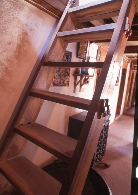 踏板がグラグラと動き、音が出ます。誰かが階段を上ってきたことが、2階にいる女性にわかる仕組みになっています。