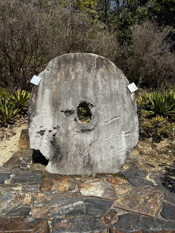 リトルワールドにある石貨「マノール」は長径155cm、重さ655kgあり、日本国内では最大級のもので、ヤップ島より贈られたものです。
